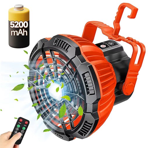 NNETM 2-in-1 Rechargeable USB Tent Ceiling Fan with LED Light - Orange