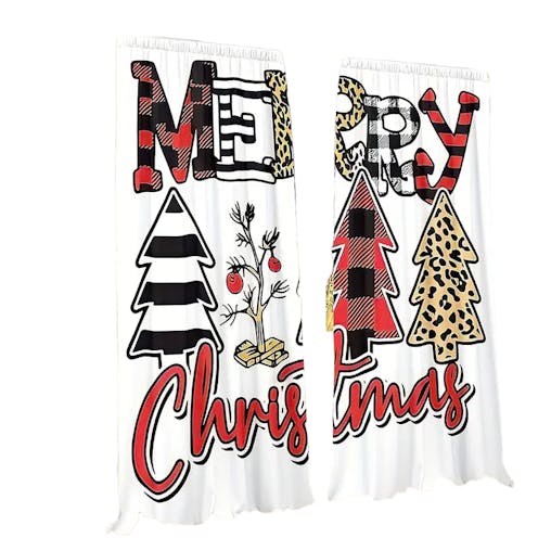 NNETM Snowy Serenity: 2PC Christmas Tree Farm Curtain Set with Snowflake Pattern