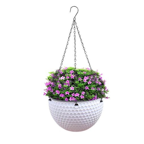 SOGA White Large Hanging Resin Flower Pot Self Watering Basket Planter Outdoor Garden Decor