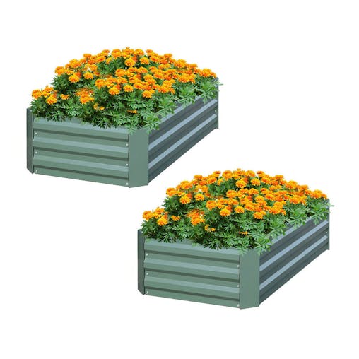 SOGA 2X 90cm Rectangle Galvanised Raised Garden Bed Vegetable Herb Flower Outdoor Planter Box