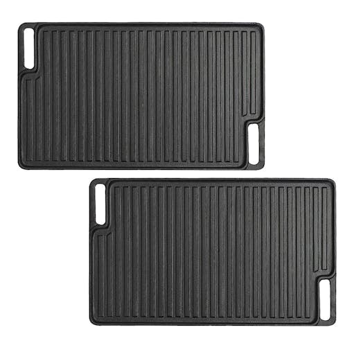SOGA 2X 45cm Rectangular Cast Iron Portable Fry BBQ Grill Plate Cooking Pan Tray with Handle