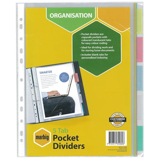Marbig 5 Tab Pocket Dividers A4 (Clear)