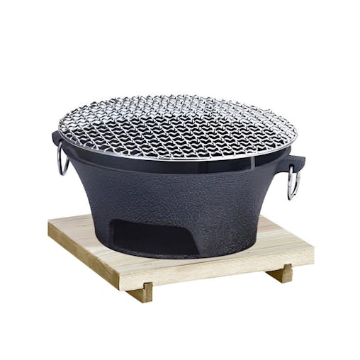 SOGA Large Cast Iron Round Stove Charcoal Table Net Grill Japanese Style BBQ Picnic Camping with Wooden Board