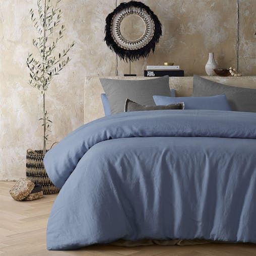 NNEDSZ Vintage Design Homewares Sky Blue 100% Hemp Quilt Cover Set King