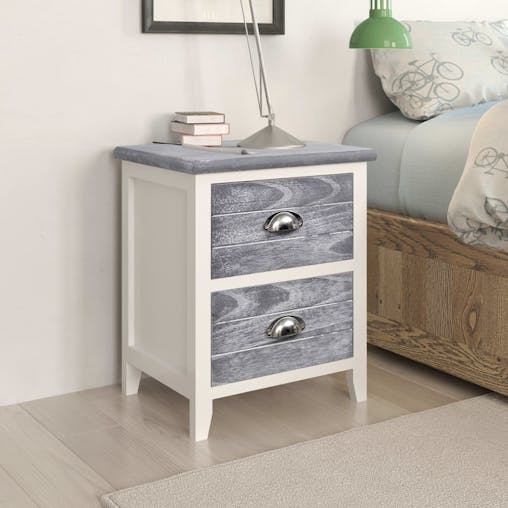 NNEVL Nightstand Grey and White 38x28x45 cm Paulownia Wood