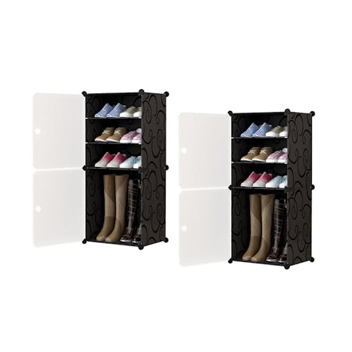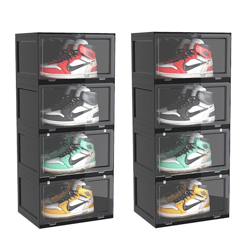 SOGA 2X 4 Tier Black Portable Shoe Organiser Sneaker Footwear Folding Plastic Bin Stackable Storage Box with Magnetic Door