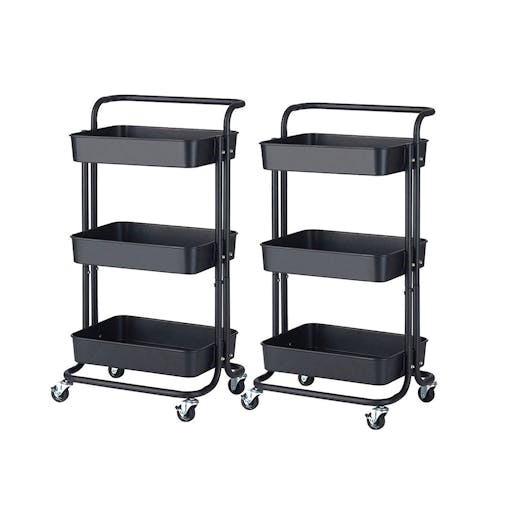 SOGA 2X 3 Tier Steel Black Movable Kitchen Cart Multi-Functional Shelves Storage Organizer with Wheels