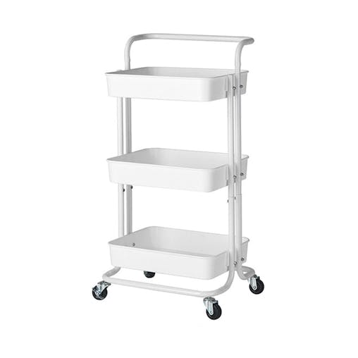 SOGA 3 Tier Steel White Movable Kitchen Cart Multi-Functional Shelves Storage Organizer with Wheels