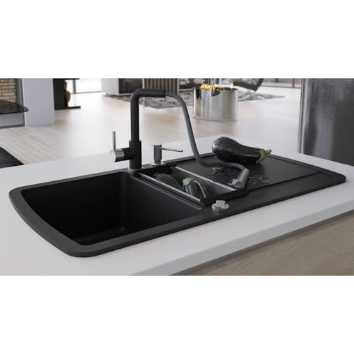 NNEVL Granite Kitchen Sink Single Basin Round Black