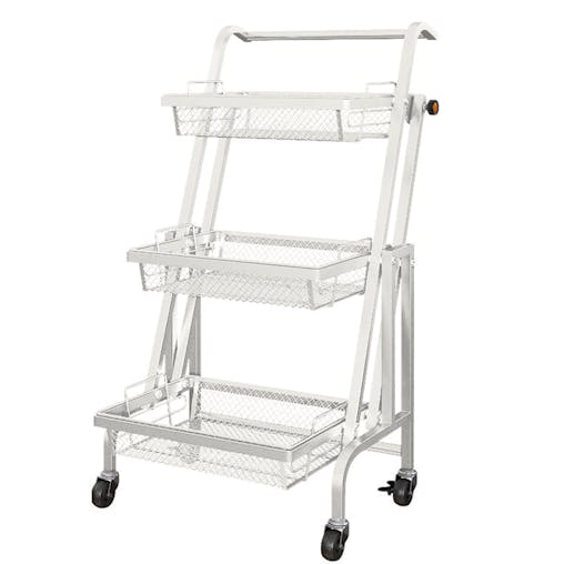 NNECW 3-Tier Folding Trolley Cart with Universal Wheels and Handrails for Home/Office/Kitchen