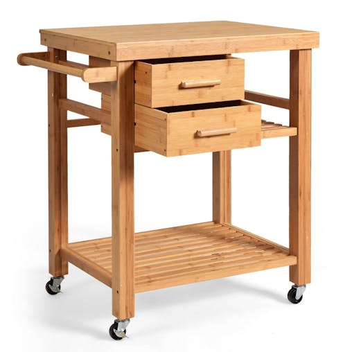 NNECW Rolling Bamboo Kitchen Island Cart with Drawers & Shelves for Dining Room