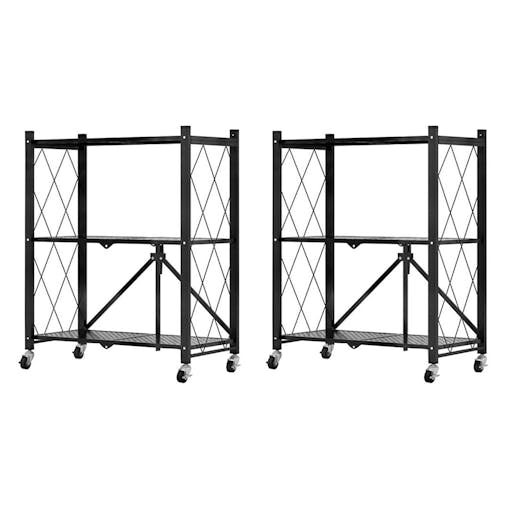 SOGA 2X 3 Tier Steel Black Foldable Kitchen Cart Multi-Functional Shelves Storage Organizer with Wheels