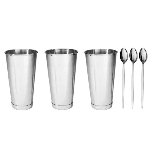 Trenton Stainless Steel Milkshake Cups 887ml Soda Spoons Set of 3