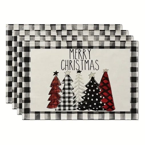 NNETM Set of 4 Buffalo Plaid Christmas Trees Placemats - Festive Winter Table Mats