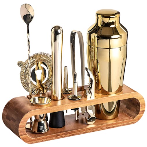 NNEOBA 11PC Bartender Cocktail Shaker Mixer Kit with Wooden Shelf