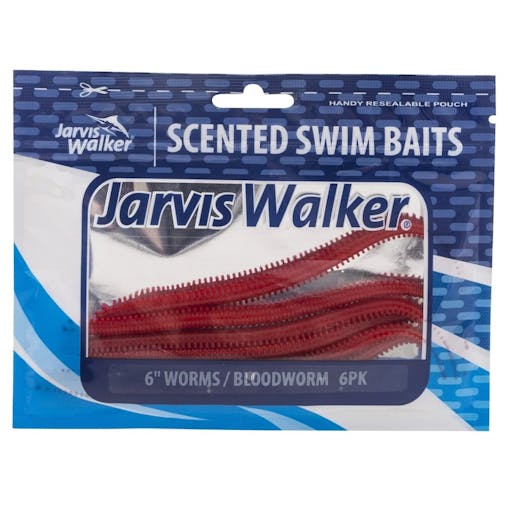 6 Pack of Jarvis Walker 6 Inch Scented Worm Soft Body Lures - Bloodworm