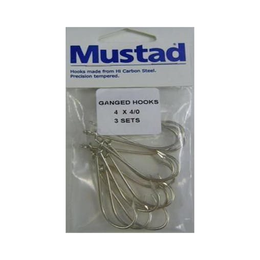3 Sets Mustad Pre-Rigged Ganged Hooks 4/0 X 4 Hooks