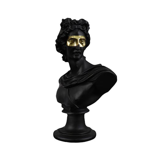 SOGA 40cm Black Classical Bust Resin Sculpture with Gold Eye Mask for Modern Home Decor