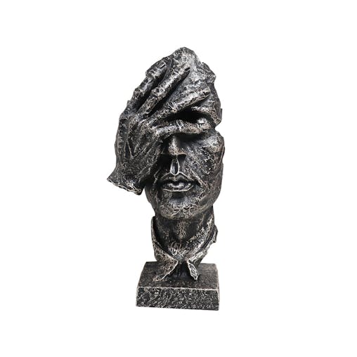 SOGA 30cm Black Resin Sculpture Covered Eyes Face Design Modern Art for Home Decor