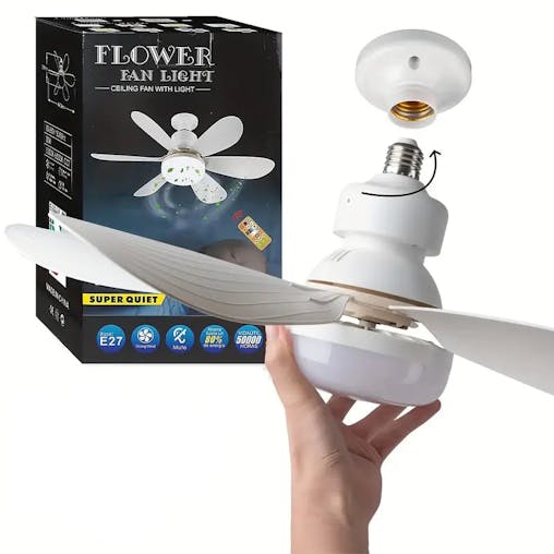 NNETM 1pc Dimmable Socket Fan Ceiling with Remote Control - Traditional Style, White