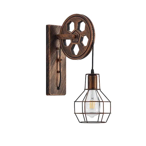 NNETM Vintage Industrial Wall Sconce - Rustic Farmhouse Bedside Lamp (Bronze)