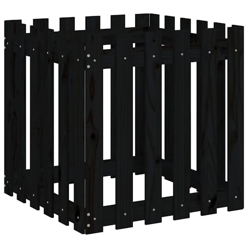 NNEVL Garden Planter with Fence Design Black 60x60x60 cm Solid Wood Pine