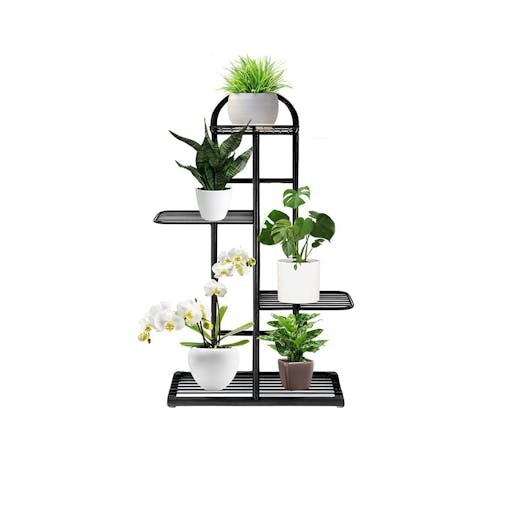 SOGA 4 Tier 5 Pots Black Metal Plant Stand Flowerpot Display Shelf Rack Indoor Home Office Decor