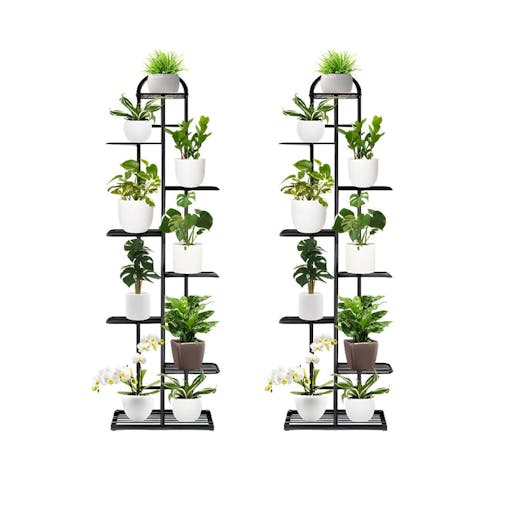 SOGA 2-Pack 8-Tier 9-Pot Black Metal Plant Stand Flowerpot Display Shelf Rack