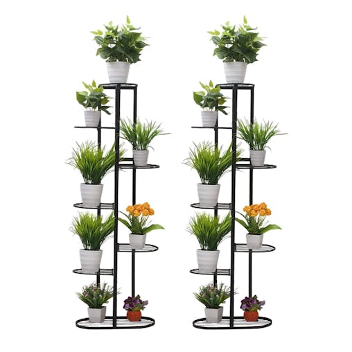SOGA 2X 7 Tier 8 Pots Black Metal Plant Stand Flowerpot Display Shelf Rack Indoor Home Office Decor