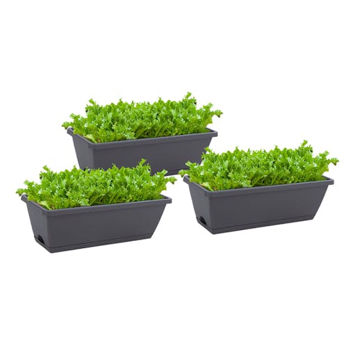 SOGA 49.5cm Black Rectangular Planter Vegetable Herb Flower Outdoor Plastic Box with Holder Balcony Garden Decor Set of 3
