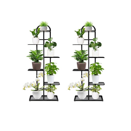 SOGA 2X 6 Tier 7 Pots Black Metal Plant Stand Flowerpot Display Shelf Rack Indoor Home Office Decor