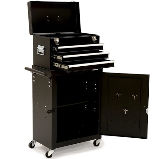 NNEMB 3 Drawer Tool Box Cabinet Trolley Storage, with 1-Door Toolbox Garage Organiser Set, Black