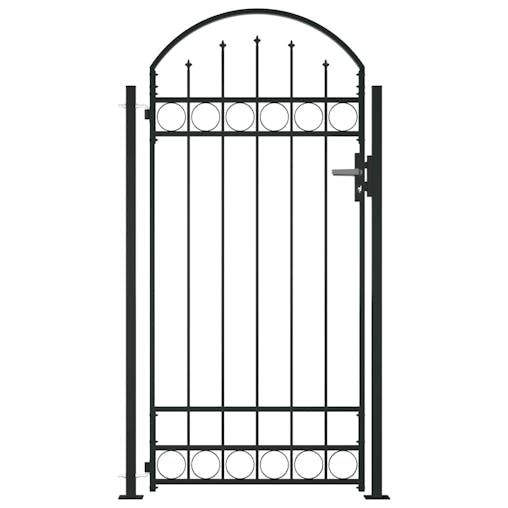 NNEVL Fence Gate with Arched Top and 2 Posts 105x204 cm Black