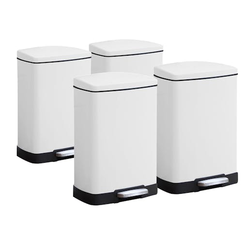SOGA 4-Pack 12L White Stainless Steel Foot Pedal Trash Bin