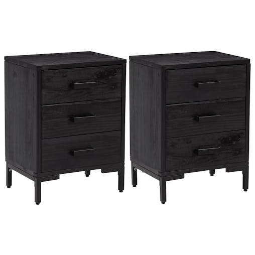 NNEVL Bedside Cabinets 2 pcs Black 36x30x54 cm Solid Wood Pine