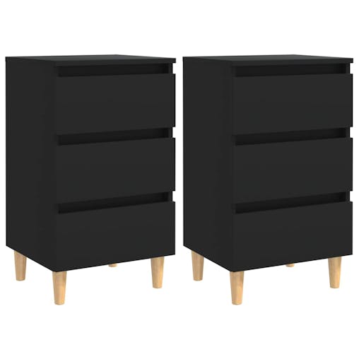 NNEVL Bed Cabinets with Solid Wood Legs 2 pcs Black 40x35x69 cm