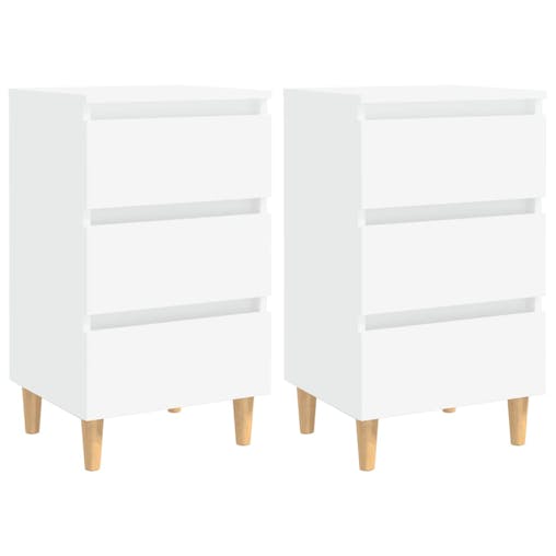 NNEVL Bed Cabinets with Solid Wood Legs 2 pcs White 40x35x69 cm