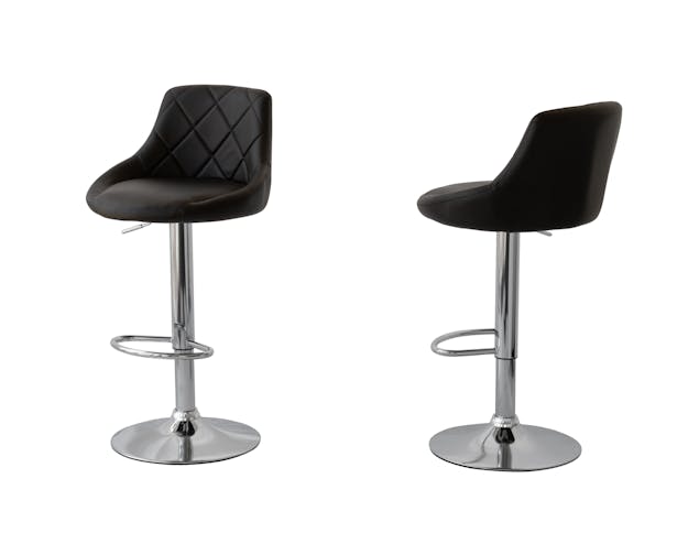 2 Diamond Style Padded Leather Barstools (Black) w/ Adjustable Height
