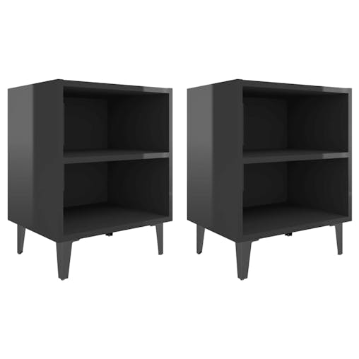 NNEVL Bed Cabinets with Metal Legs 2 pcs High Gloss Black 40x30x50 cm