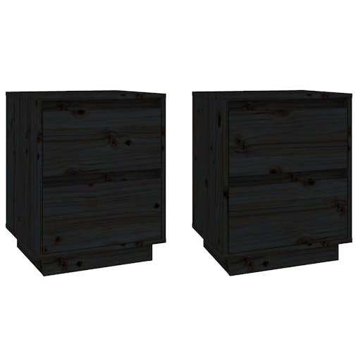 NNEVL Bedside Cabinets 2 pcs Black 40x35x50 cm Solid Wood Pine