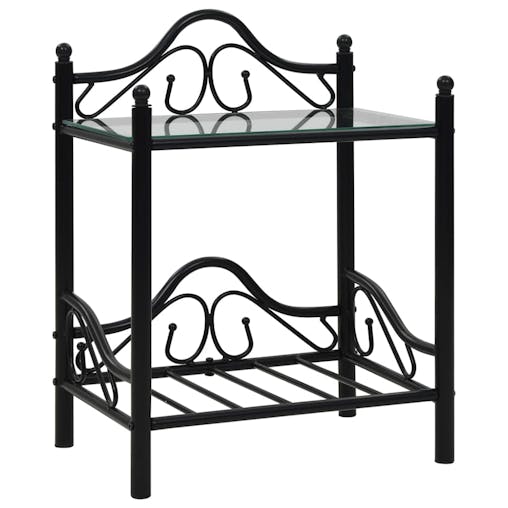 NNEVL Bedside Table Steel and Tempered Glass 45x30.5x60 cm Black
