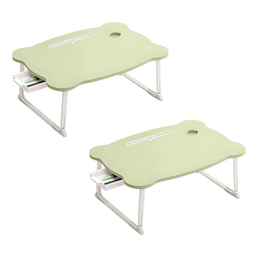 SOGA 2XGreen Portable Bed Table Adjustable Folding Mini Desk With Mini Drawer and Cup-Holder Home Decor