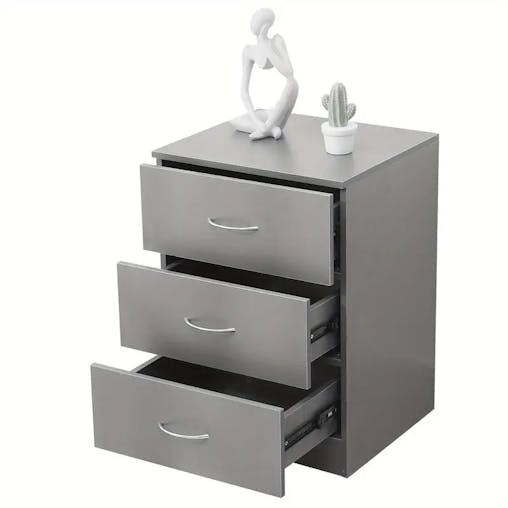 NNETM Modern Gray Bedside Table with 3 Drawers
