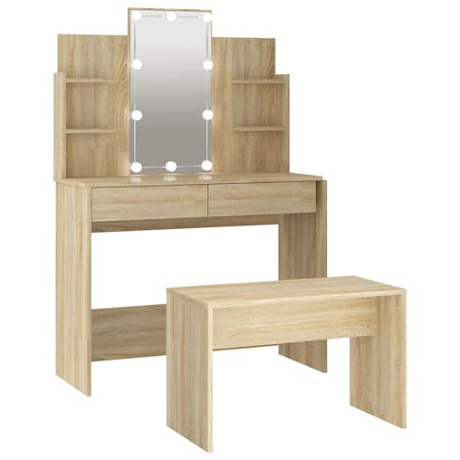 NNEVL Dressing Table Set with LED Sonoma Oak Engineered Wood