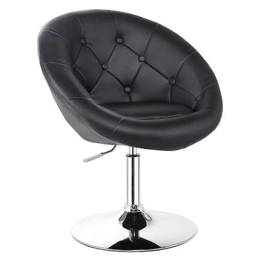 NNECW Swivel Round Tufted Back Chair Accent Chair with PU Leather and Chromed Base
