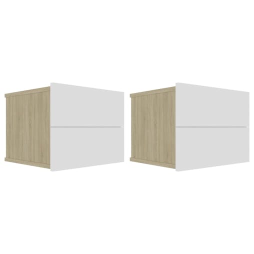NNEVL Bedside Cabinets 2 pcs White and Sonoma Oak 40x30x30 cm Chipboard