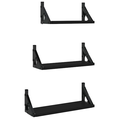 NNEVL 3 Piece Wall Shelf Set Black Engineered Wood