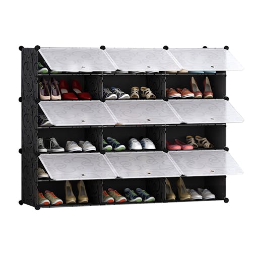 SOGA 10 Tier 3 Column Shoe Rack Organizer Sneaker Footwear Storage Stackable Stand Cabinet Portable Wardrobe with Cover
