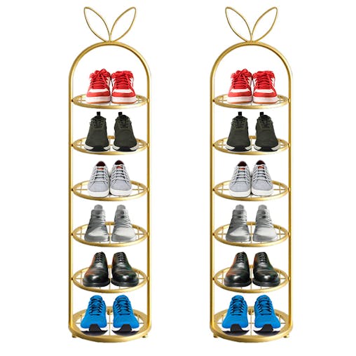 SOGA 2X 6 Tier Bunny Ears Gold Plated Metal Shoe Organizer Space Saving Portable Footwear Storage Shelf