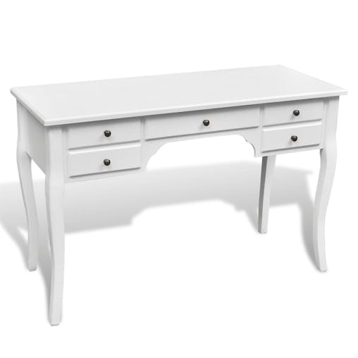 NNEVL Wooden French Desk with Curved Legs and 5 Drawers